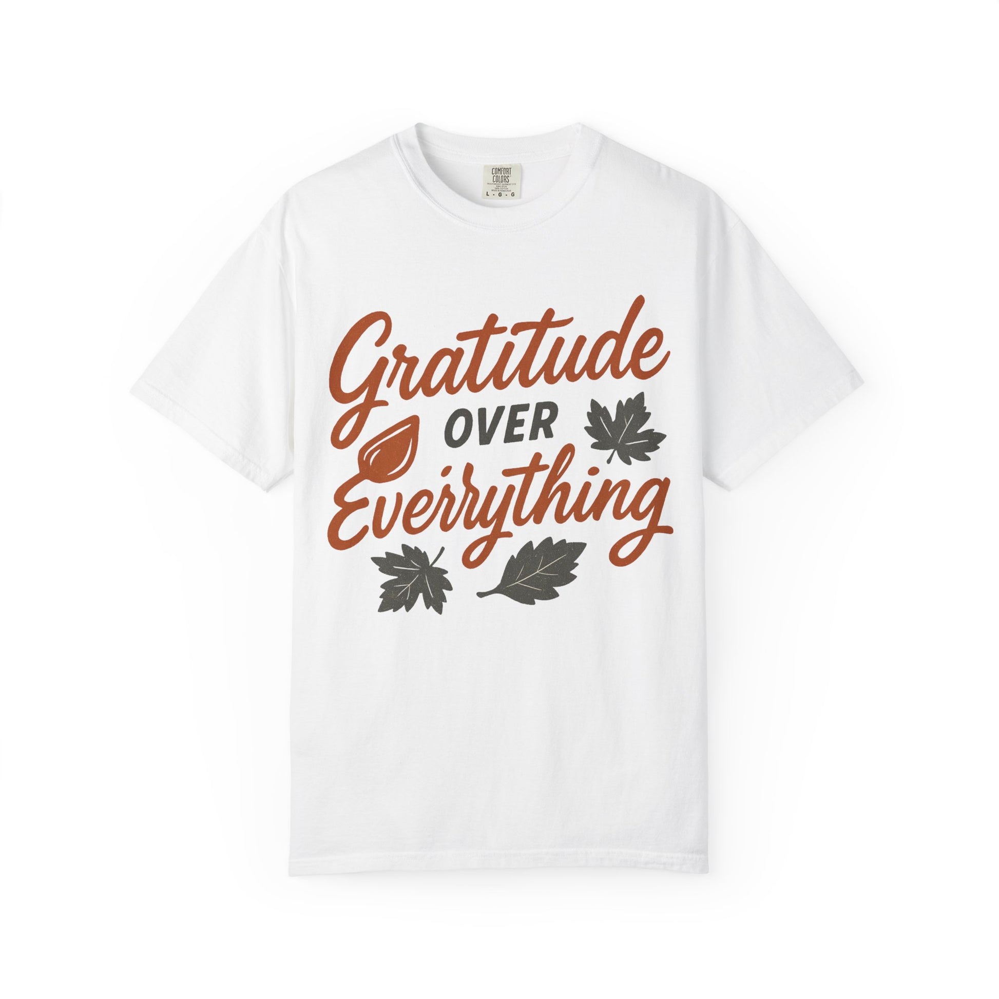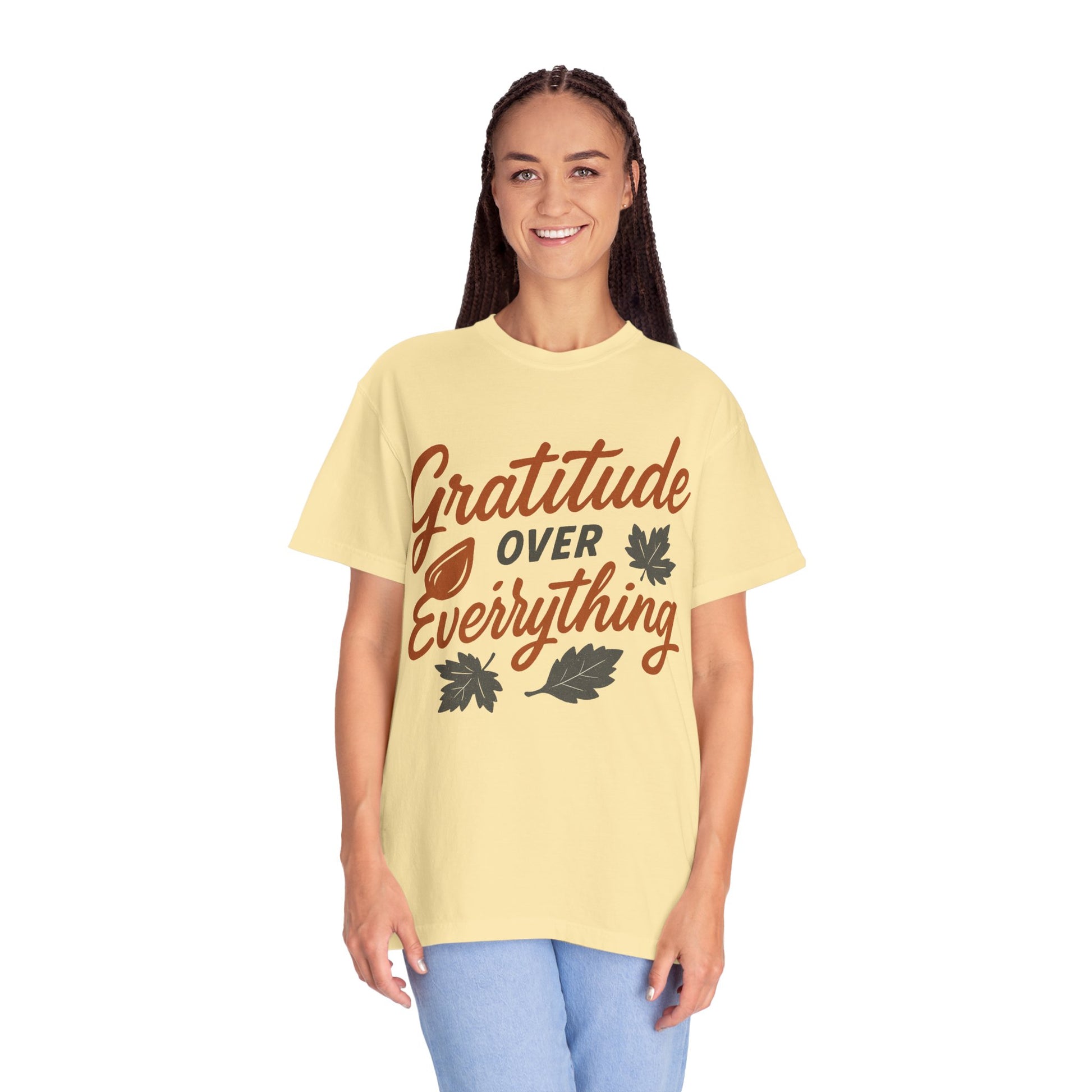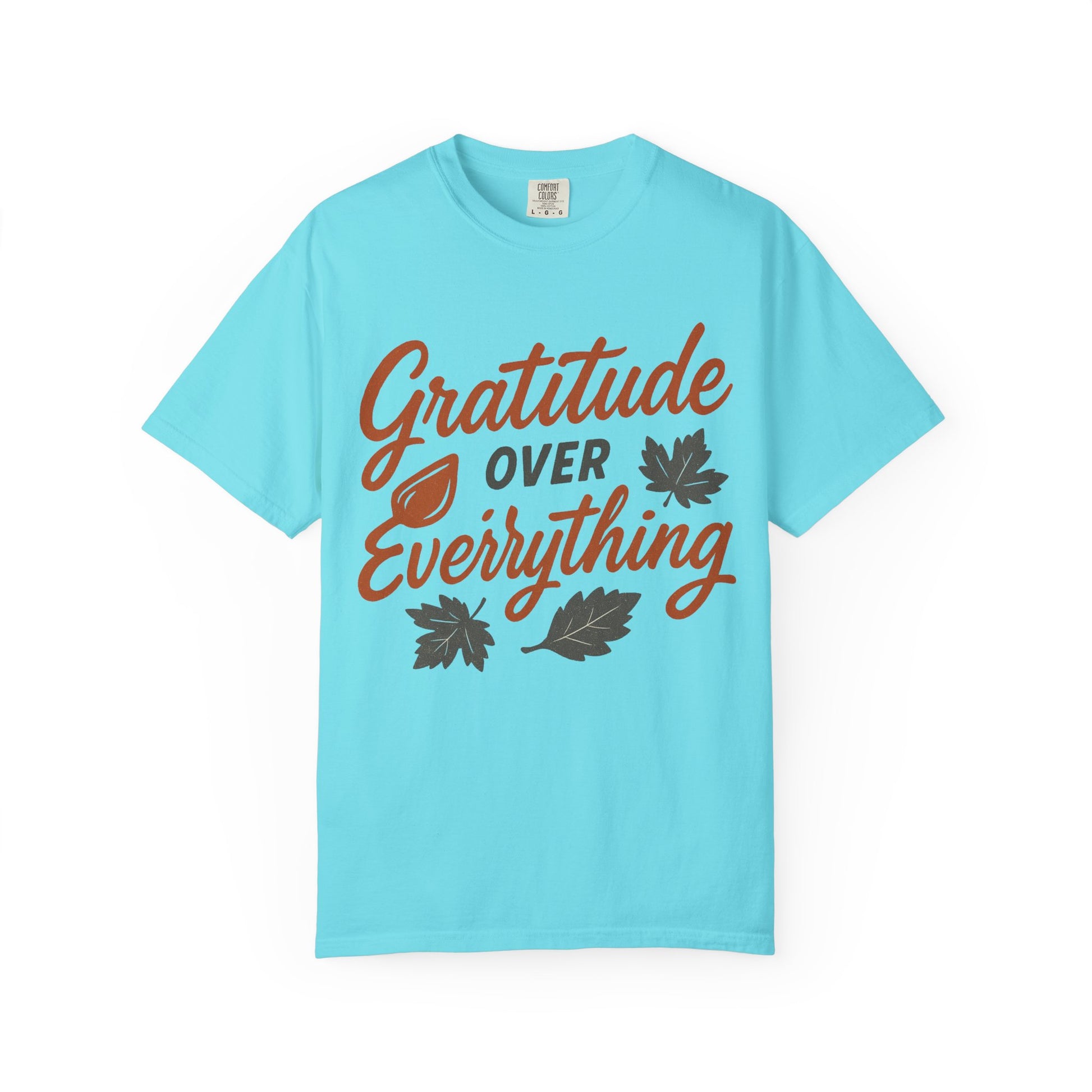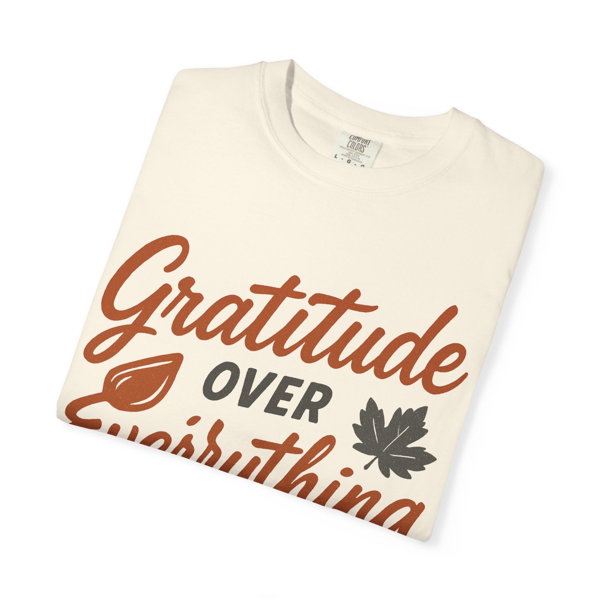 This Gratitude Over Everything T-Shirt exudes positivity and gratefulness, making it a great addition to anyone's wardrobe. Perfect for those who value gratitude and positivity in their daily lives. Ideal for Thanksgiving, birthdays, or as a thoughtful gift for a friend.